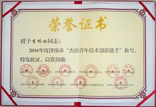 近日,濟(jì)南市總工會(huì)、團(tuán)市委、市發(fā)改委、市經(jīng)信委、市科技局、市民政局、市人社局、市城鄉(xiāng)建設(shè)委、市國(guó)資委、市金融辦聯(lián)合發(fā)文表彰2016年度濟(jì)南市青年崗位操作能手和青年技術(shù)創(chuàng)新能手。濟(jì)南城建集團(tuán)六分公司青年職工李嶠玲榜上有名,被授予2016年度濟(jì)南市杰出青年技術(shù)創(chuàng)新能手稱號(hào)。