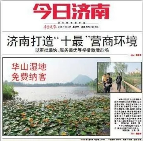 濟(jì)南電視臺《都市新女報(bào)》:華山湖全部完成后,面積相當(dāng)于五個(gè)大明湖。