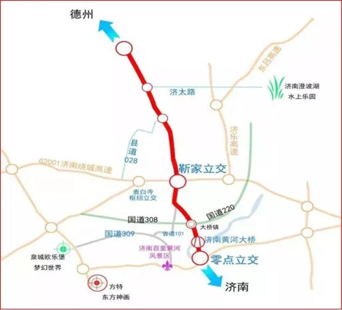 沿線居民和企業(yè)通過(guò)靳家互通立交往東直達(dá)遙墻國(guó)際機(jī)場(chǎng)、連接濟(jì)樂和濟(jì)東高速,往西連接青銀直通京福、濟(jì)聊高速,極大地方便了黃河北地區(qū)市民出行。