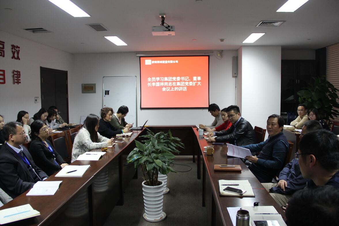 2017年11月15日下午,濟南西城置業(yè)全體員工學(xué)習(xí)集團黨委書記、董事長李國祥同志在集團黨委擴大會議上的講話,落實集團黨委要求,學(xué)好、學(xué)懂黨的十九大精神,振奮士氣,推動工作,努力完成各項任務(wù)指標,爭創(chuàng)更佳經(jīng)營業(yè)績。