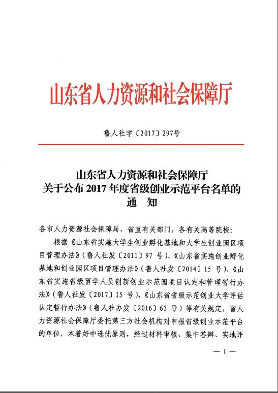 附:山東省人力資源和社會保障廳關(guān)于公布2017年度省級創(chuàng)業(yè)示范平臺名單的通知