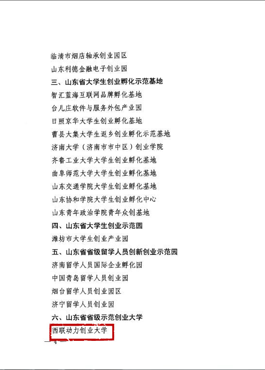 近日,省人社廳發(fā)布《山東省人力資源和社會保障廳關(guān)于公布2017年度省級創(chuàng)業(yè)示范平臺名單的通知》,明確全省評估認(rèn)定西聯(lián)動力等6家單位為省級示范創(chuàng)業(yè)大學(xué)。西聯(lián)動力是濟(jì)南市唯一獲此殊榮,也是全省唯一以企業(yè)命名的示范創(chuàng)業(yè)大學(xué)。