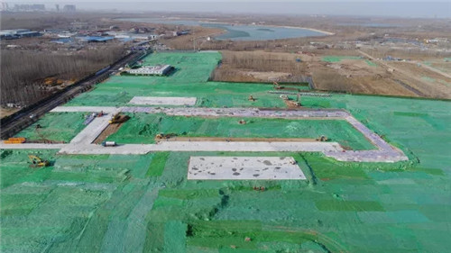 “截至目前,現(xiàn)場已完成場地清表、平整、回填土方約12萬立方米,澆筑混凝土約2700立方米,硬化面積約9000平方米。”