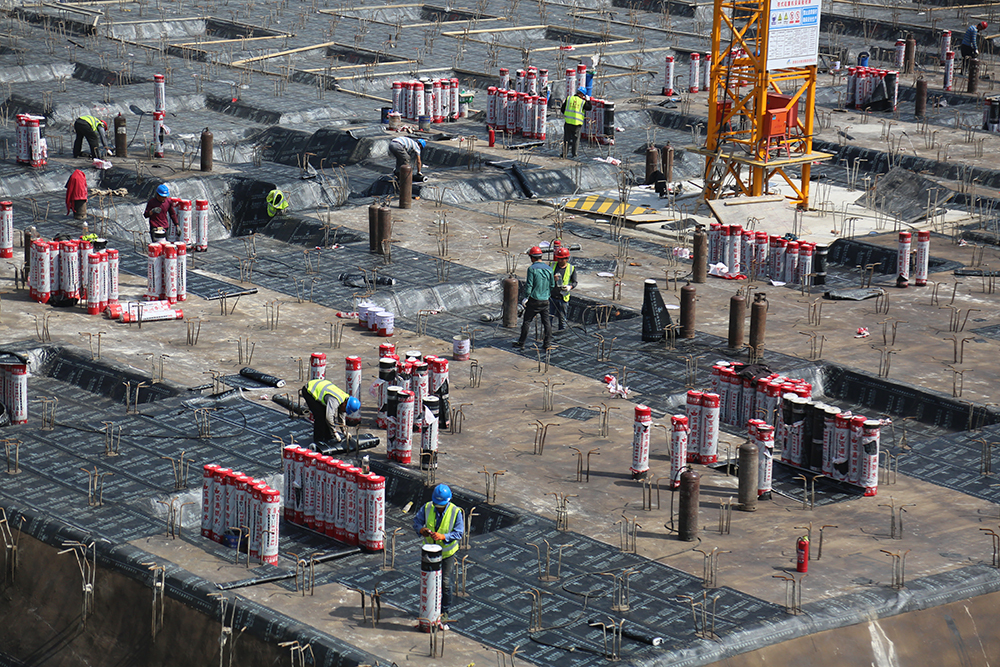 迪卡儂項目北鄰西部會展中心,東臨二環(huán)西路,南側(cè)緊鄰宜家項目,西側(cè)為大片居住辦公混合區(qū)。項目總建筑面積為3.2萬平方米,總計四層,其中地上兩層,地下兩層。自項目進場施工以來,已完成支護工程與抗浮錨桿的建設,正在進行基礎(chǔ)防水、筏板基礎(chǔ)施工及鋼筋的綁扎等工作。