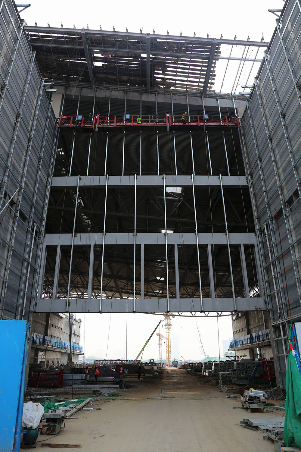 展館區(qū)域主體結(jié)構(gòu)收尾中,計(jì)劃6月底主體結(jié)構(gòu)封頂