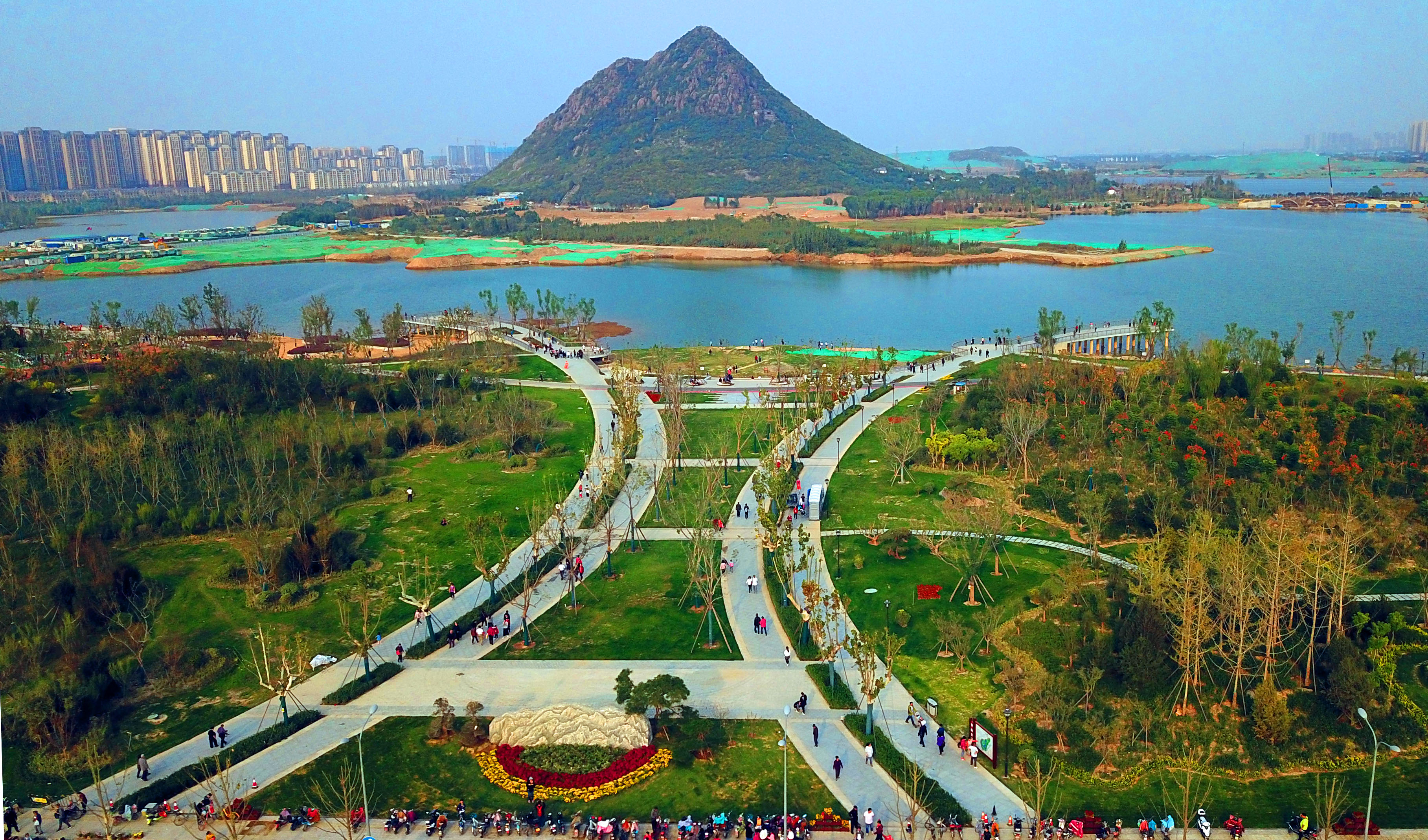 華山西、南、北三側(cè)的園林景觀綠化工程已基本竣工,景觀達到預(yù)期效果,華山東側(cè)的主體景觀建設(shè)已基本完成;