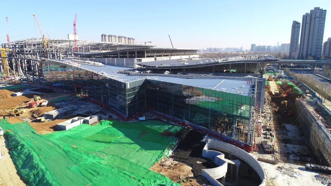 目前,展館區(qū)域已完成5個(gè)展館及4、5號(hào)館共享大廳、西輔房區(qū)域主體鋼結(jié)構(gòu)與二次結(jié)構(gòu)施工,正在進(jìn)行裝飾安裝工程。地下車(chē)庫(kù)已完成除軌道M1線預(yù)埋段區(qū)域主體結(jié)構(gòu)施工,正在進(jìn)行二次結(jié)構(gòu)、裝飾安裝、室外回填及剩余地下車(chē)庫(kù)主體結(jié)構(gòu)工程施工。