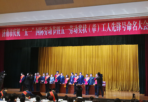 2018年4月23日,濟南市總工會在龍奧大廈召開濟南市慶祝“五一”國際勞動節(jié)暨五一勞動獎狀(章)工人先鋒號命名大會。大會表彰了一批工作突出、貢獻卓著的先進集體和先進個人。
