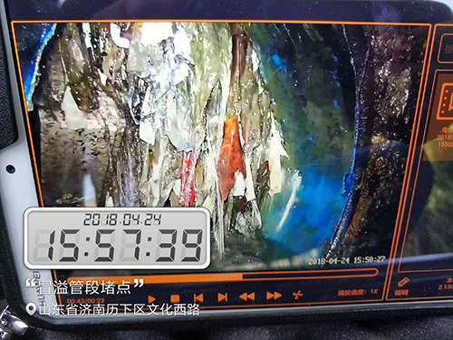 應(yīng)急搶險(xiǎn)小組立即制定搶險(xiǎn)計(jì)劃,使用管道潛望鏡等檢測設(shè)備對冒溢原因進(jìn)行排查,經(jīng)排查初步判定為下游管口阻塞造成,由于現(xiàn)場處于綠化帶內(nèi),機(jī)械設(shè)備無法進(jìn)入,搶險(xiǎn)小組根據(jù)實(shí)際情況現(xiàn)場設(shè)計(jì)焊接作業(yè)工具,配合管道潛望鏡對管道進(jìn)行人工掏挖,經(jīng)過4個(gè)小時(shí)的清理,將管道內(nèi)部分垃圾清除,首先確保檢查井停止冒溢。但經(jīng)過管道潛望鏡再次查看發(fā)現(xiàn)管道內(nèi)依然存在40*20*15cm、60*20*15cm立沿石兩塊無法完全清除,后期仍存在冒溢風(fēng)險(xiǎn),為確保管網(wǎng)長期正常運(yùn)行,搶險(xiǎn)小組當(dāng)機(jī)立斷制定人工下井作業(yè)清除方案,務(wù)必將阻塞點(diǎn)徹底清除掉。