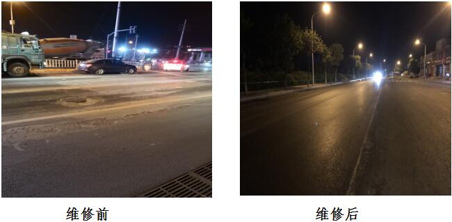 針對市民群眾反映文清小學(xué)門口路面破損問題,由于超載車輛過多,路面塌陷嚴(yán)重,教師學(xué)生及過往人員較多,多次修復(fù)后路面問題依舊沒有得到解決,巡檢人員了解情況后決心集中力量從基層處理該處破損,采用大型洗刨車,重做基層,新瀝攤鋪有效解決了該處破損,得到了老師家長的一致認(rèn)可。