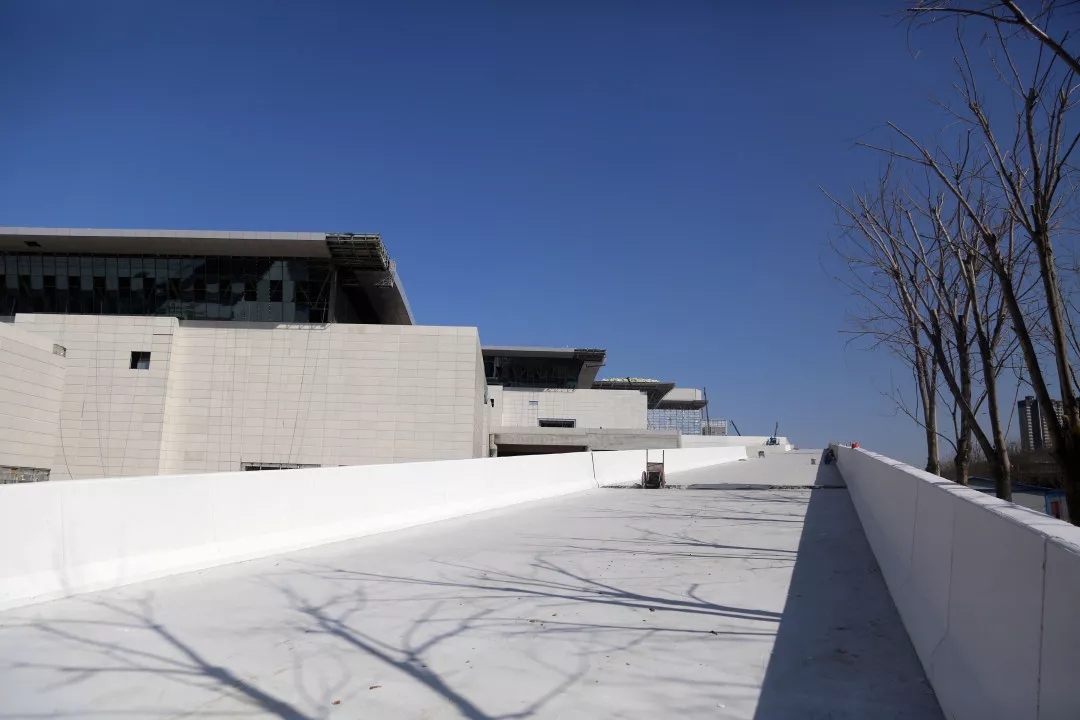 項(xiàng)目建成后,主入口位于展館西側(cè)的共享大廳,南北向的5個(gè)展館通過共享大廳相通,目前共享大廳的玻璃幕墻已安裝完畢,每塊玻璃都按照固定編號(hào)依次安裝,不同弧度的玻璃面完美拼接,將大廳的流動(dòng)設(shè)計(jì)感盡顯無(wú)疑。共享大廳外立面的LED大屏頗為搶眼,高約8米、長(zhǎng)約43米的LED大屏日后將用于不同展館布展介紹情況等宣傳使用。在室外部分,正在進(jìn)行廣場(chǎng)綠化和管道鋪設(shè)等施工,工人們有條不紊地完善著室外施工細(xì)節(jié)。