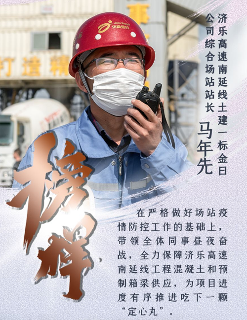 新型冠狀病毒肺炎疫情發(fā)生以來,濟(jì)南城市建設(shè)集團(tuán)認(rèn)真貫徹落實中央、省、市關(guān)于疫情防控和復(fù)工復(fù)產(chǎn)的決策部署,上下一心、眾志成城,全體干部職工恪盡職守、扎根一線,全員全力投入到疫情防控阻擊戰(zhàn)中。期間,涌現(xiàn)出了眾多先進(jìn)典型和感人故事,用實際行動詮釋了建設(shè)集團(tuán)人的精神風(fēng)貌和責(zé)任擔(dān)當(dāng)。我們在集團(tuán)宣傳平臺《榜樣》欄目,推出系列人物報道,挖掘宣傳一線典型,提振士氣、凝聚力量,激勵我們繼續(xù)前行,堅決打贏疫情防控的人民戰(zhàn)爭、總體戰(zhàn)、阻擊戰(zhàn)。