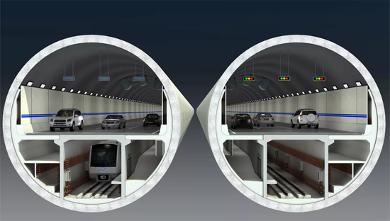 項目提出了雙道防淹門解決方案,以實現(xiàn)全方位有效封堵,保護城市安全。為拓展城市空間,濟南黃河隧道設計為城市市政道路和軌道交通合建方案,實現(xiàn)隧道空間最大利用率。“萬里黃河第一隧”設計為雙管雙層公軌合建盾構(gòu)隧道,上層為公路雙向6車道,下層為軌道交通以及排煙通道、管廊和逃生通道,實現(xiàn)一次穿越黃河的利用率最大化,極大降低了對環(huán)境的影響。