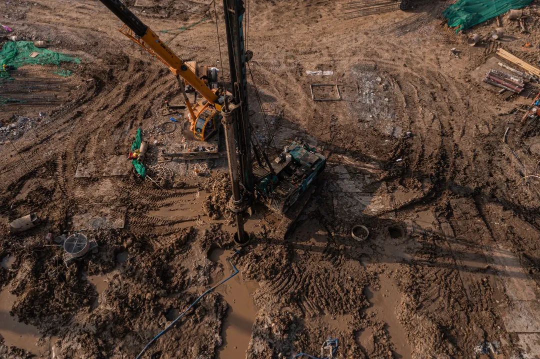 樁基施工準(zhǔn)備階段,根據(jù)項(xiàng)目情況優(yōu)化編制基礎(chǔ)工程施工組織方案,制定樁基施工布置圖,按基樁類型、特點(diǎn)劃分9個(gè)施工區(qū)域,明確基樁編號(hào)、施工順序、基樁檢測(cè)等策劃內(nèi)容,有效串聯(lián)設(shè)計(jì)、施工、監(jiān)理、檢測(cè)、驗(yàn)收等環(huán)節(jié)。在3萬(wàn)平方米打樁區(qū)域,同時(shí)布置了20余臺(tái)旋挖鉆機(jī)、30余臺(tái)汽車吊、20余臺(tái)裝載機(jī),施工勞務(wù)人員300余人,投入9個(gè)施工區(qū)域24小時(shí)不間斷作業(yè)。自2021年10月22日開始全面鉆進(jìn),11月26日,澆筑完成最后一根樁基,山大二院項(xiàng)目全體人員迎難而上,酣戰(zhàn)月余,克服暴雪、大風(fēng)等惡劣天氣,施工日均完成樁基80余顆,順利完成2452顆樁基的施工,完成樁基產(chǎn)值約1億元,占項(xiàng)目建安總投資的4.2%。完成項(xiàng)目建設(shè)第一個(gè)里程碑節(jié)點(diǎn),實(shí)現(xiàn)全面進(jìn)入下步土方開挖施工節(jié)點(diǎn)跨越。
