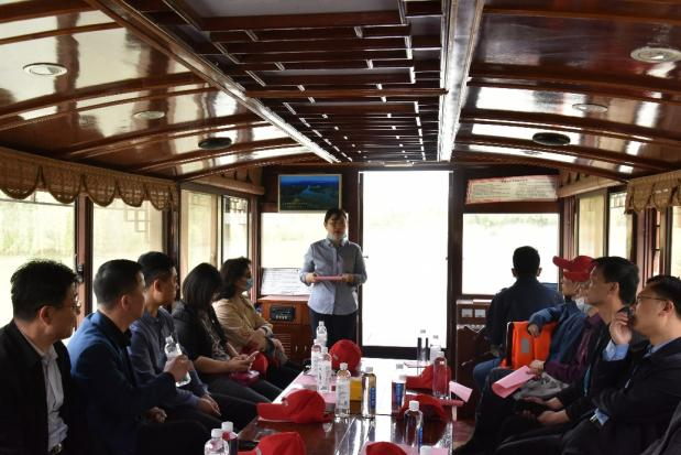 活動中,全體人員參觀了濟(jì)西濕地,并詳細(xì)了解了濟(jì)西濕地的建設(shè)情況。黨員代表分享了“中共一大南湖紅船”故事,全體黨員共同誦讀《紅船,從南湖啟航》,濕地青年員工進(jìn)行紅歌表演。