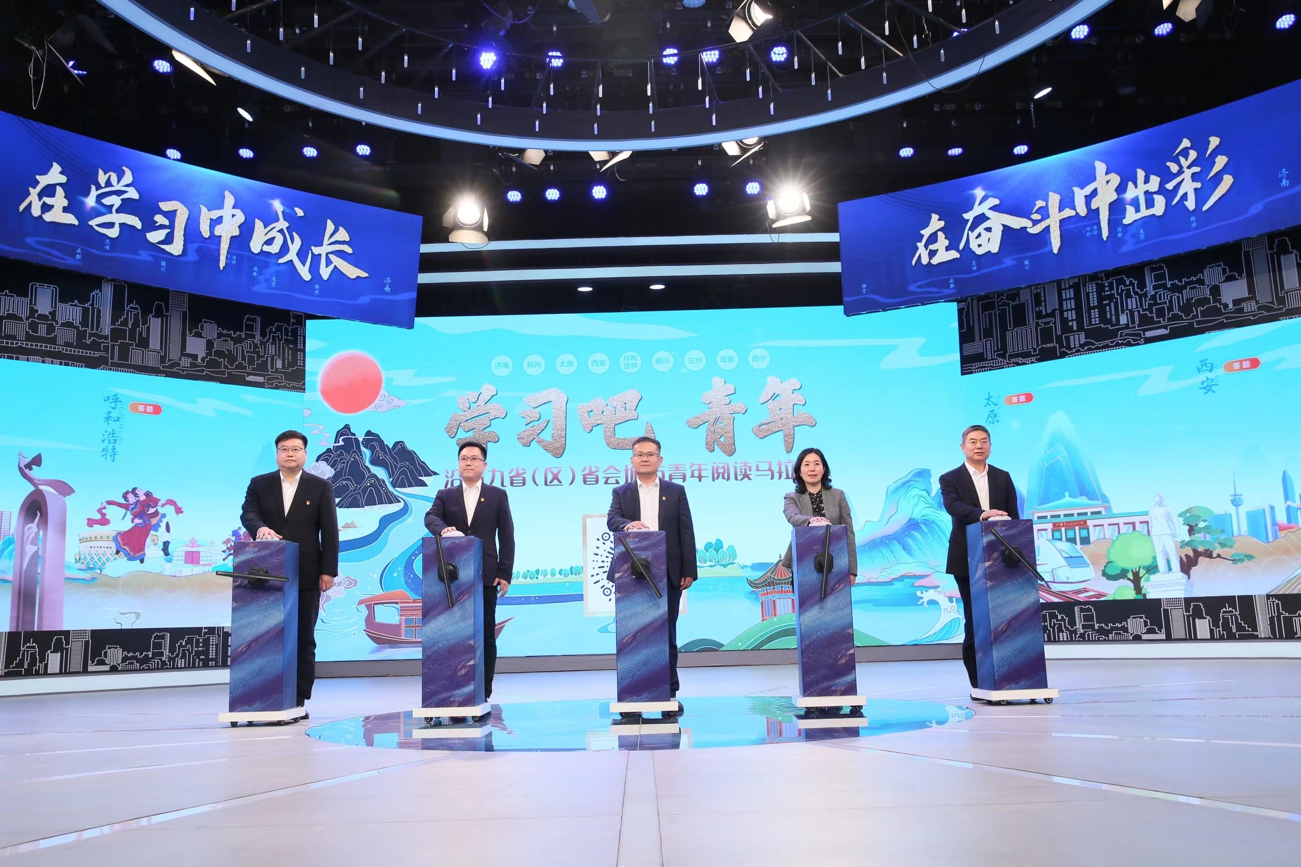 為深入學(xué)習(xí)宣傳貫徹落實黨的二十大精神和習(xí)近平總書記關(guān)于黃河流域生態(tài)保護(hù)和高質(zhì)量發(fā)展重要講話精神,弘揚“黃河文化”,講好“黃河故事”,11月14日,“學(xué)習(xí)吧,青年”沿黃九?。▍^(qū))省會城市青年閱讀馬拉松暨泉城年輕干部閱讀馬拉松挑戰(zhàn)賽啟動儀式在濟(jì)南廣播電視臺演播大廳舉行。本次活動由中共濟(jì)南市委組織部、中共濟(jì)南市委宣傳部、共青團(tuán)濟(jì)南市委、濟(jì)南廣播電視臺、濟(jì)南城市建設(shè)集團(tuán)有限公司共同主辦,沿黃九?。▍^(qū))省會城市團(tuán)委、沿黃九?。▍^(qū))省會城市廣播電視臺聯(lián)動支持。