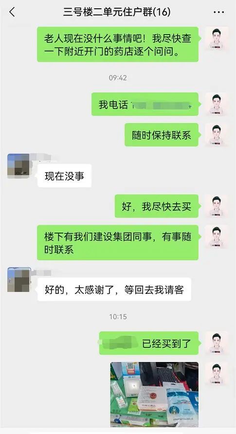 孫景鑫得知情況后,徒步對(duì)小區(qū)附近內(nèi)藥店進(jìn)行詢問,均沒有這種藥品,又經(jīng)多方聯(lián)系,開車延稼軒路向南一直到工業(yè)北路向濟(jì)鋼方向一路尋找,終于尋到此藥品,自費(fèi)購買了一個(gè)月正常使用量的“心痛寧滴丸”,并為獨(dú)居老人捎帶部分防疫和消暑物資。隨后,他又投身于戰(zhàn)“疫”工作中,并在住戶微信群里說道:“樓下有我們建設(shè)集團(tuán)的同事,有事隨時(shí)聯(lián)系我們。”