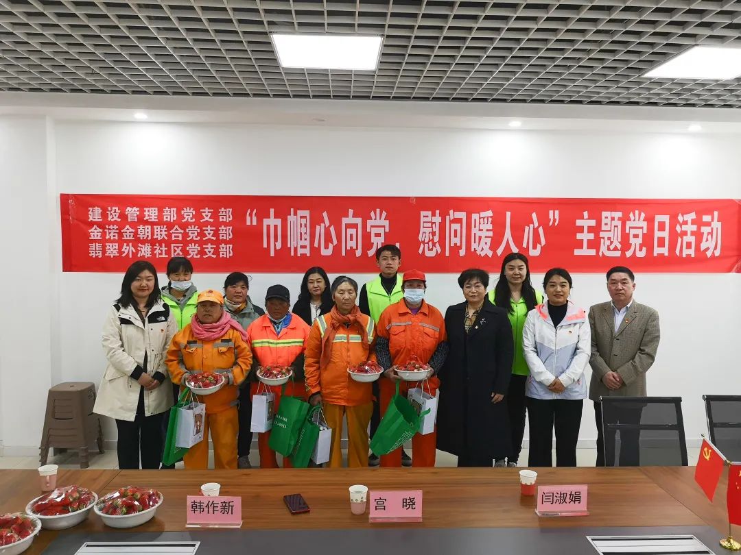 3月8日,集團(tuán)建設(shè)管理部黨支部、金諾金朝聯(lián)合黨支部赴華山街道翡翠外灘社區(qū)開展“巾幗心向黨,慰問暖人心”主題黨日活動。