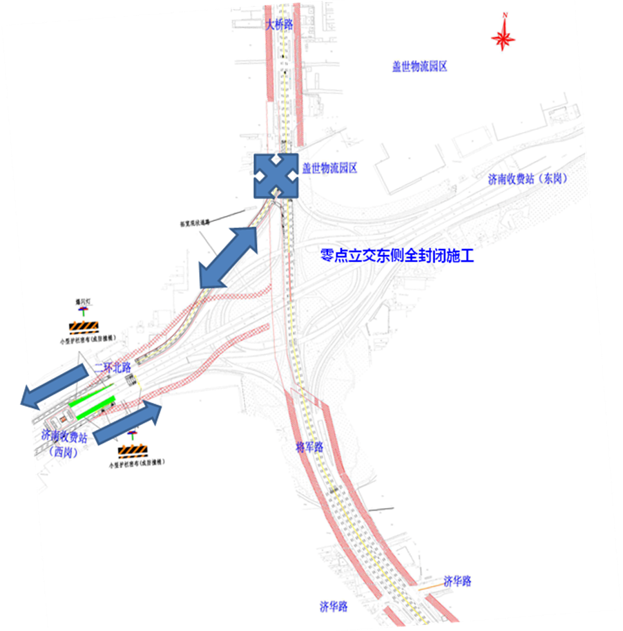 2022年5月6日0時,將封閉G35濟(jì)廣高速零點立交橋濟(jì)南站東崗收費站,拆除零點立交全部轉(zhuǎn)向匝道。