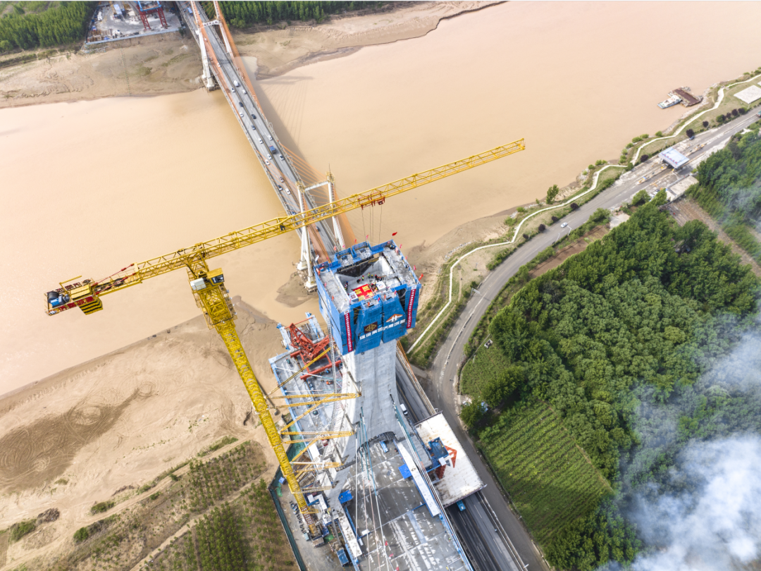 由濟(jì)南城市建設(shè)集團(tuán)投資建設(shè),建設(shè)集團(tuán)所屬濟(jì)南城建集團(tuán)公司參與承建的G104京嵐線濟(jì)南黃河公路大橋擴(kuò)建工程主橋?yàn)殡p塔雙索面公軌兩用鋼桁梁斜拉橋,主跨488米,是黃河上在建最大跨徑公軌兩用斜拉橋。主橋索塔高168.6米,寶瓶形構(gòu)造,造型新穎、施工難度大、技術(shù)要求高。項(xiàng)目部嚴(yán)格按照住建部、省、市危險(xiǎn)性較大的分部分項(xiàng)工程安全管理規(guī)定、危險(xiǎn)性較大的分部分項(xiàng)工程專項(xiàng)施工方案編制指南及相關(guān)要求,成立技術(shù)創(chuàng)新小組、施工部署方案策劃評審領(lǐng)導(dǎo)小組等組織機(jī)構(gòu),充分調(diào)動(dòng)技術(shù)人員積極性、創(chuàng)造性,編制了《索塔專項(xiàng)施工方案》,并成功應(yīng)用于本工程索塔施工中,達(dá)到安全生產(chǎn)、降本增效的目的,為推動(dòng)項(xiàng)目安全有序建設(shè)蓄勢賦能。