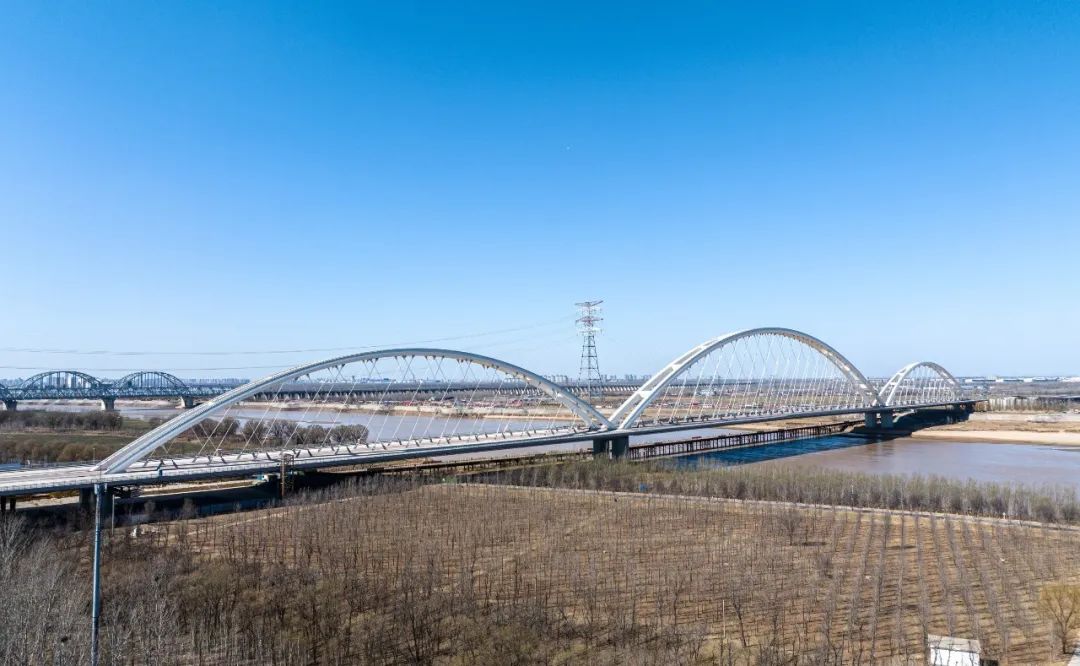 濟(jì)南黃河齊魯大橋位于濟(jì)南市槐蔭區(qū)、天橋區(qū),路線南起齊魯大道與濟(jì)齊路交叉口,接現(xiàn)狀齊魯大道,依次跨越美里路、北太平河北路、濟(jì)廣高速,經(jīng)過(guò)鄭家店村東,跨越黃河后,終點(diǎn)位于G309交叉處。項(xiàng)目全長(zhǎng)6742米,按照雙向八車(chē)道一級(jí)公路標(biāo)準(zhǔn)建設(shè),兼顧城市主干路功能,設(shè)計(jì)速度60公里/小時(shí),主橋范圍為公軌合建的橋梁形式,中間預(yù)留城市軌道交通空間。主橋采用網(wǎng)狀吊桿系桿拱橋,主跨420米,工程建成后將成為同類橋型跨徑世界第一。