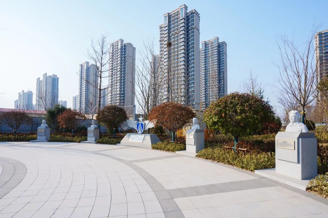 在公園南地塊紀念廣場,通過展示張莊機場原駐扎部隊6位空軍戰(zhàn)斗英雄的雕像和英雄事跡,以及“空中鐵拳精神”展示,傳承紅色基因。