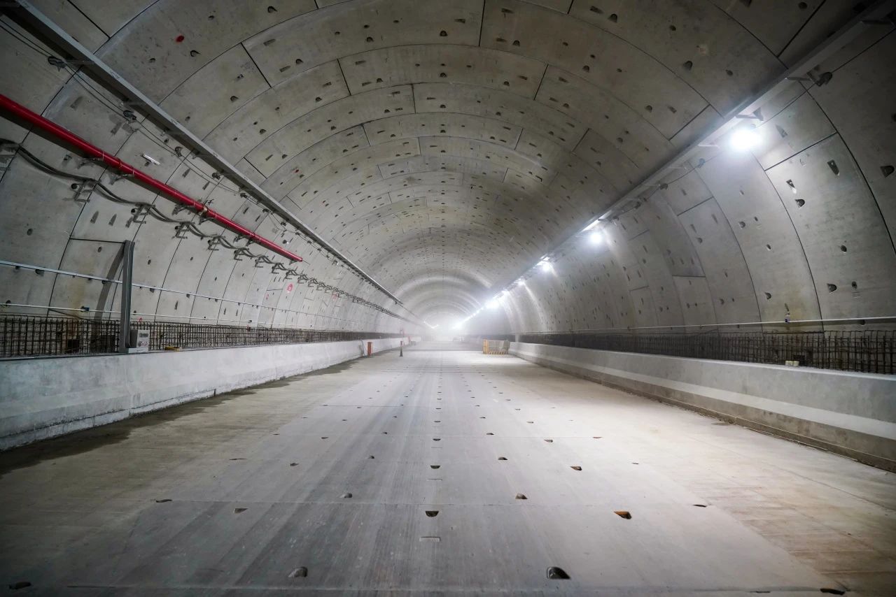 近日,由濟(jì)南城市建設(shè)集團(tuán)投資建設(shè)的濟(jì)濼路穿黃北延隧道工程,全面落實(shí)安全生產(chǎn)月相關(guān)工作要求,多措并舉保障施工安全,優(yōu)化施工工序推進(jìn)工程建設(shè),目前項(xiàng)目正積極推進(jìn)隧道內(nèi)部機(jī)電、裝飾裝修施工,計(jì)劃2025年5月具備通車條件。