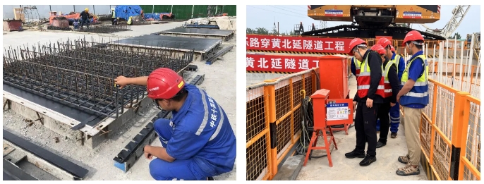 濟(jì)濼路穿黃北延隧道工程起自黃河隧道敞開段,通過兩臺(tái)4000噸重、直徑為15.76米的盾構(gòu)機(jī)以隧道方式下穿邯濟(jì)鐵路、鵲山水庫后,以明挖暗埋方式下穿石濟(jì)客專及邯膠聯(lián)絡(luò)線,過科學(xué)城南邊界路后出地面,繼續(xù)向北直至國道G308(北延工程終點(diǎn))。采用雙管雙層隧道,雙向六車道公鐵合建方案,管片外徑15.2米,項(xiàng)目全長4.38公里,其中隧道總長度3.23公里(含盾構(gòu)段2.05公里)。上層道路采用城市主干路標(biāo)準(zhǔn),雙向六車道,設(shè)計(jì)速度60公里/小時(shí)。下層軌道交通采用市域鐵路標(biāo)準(zhǔn),設(shè)計(jì)速度100公里/小時(shí)。