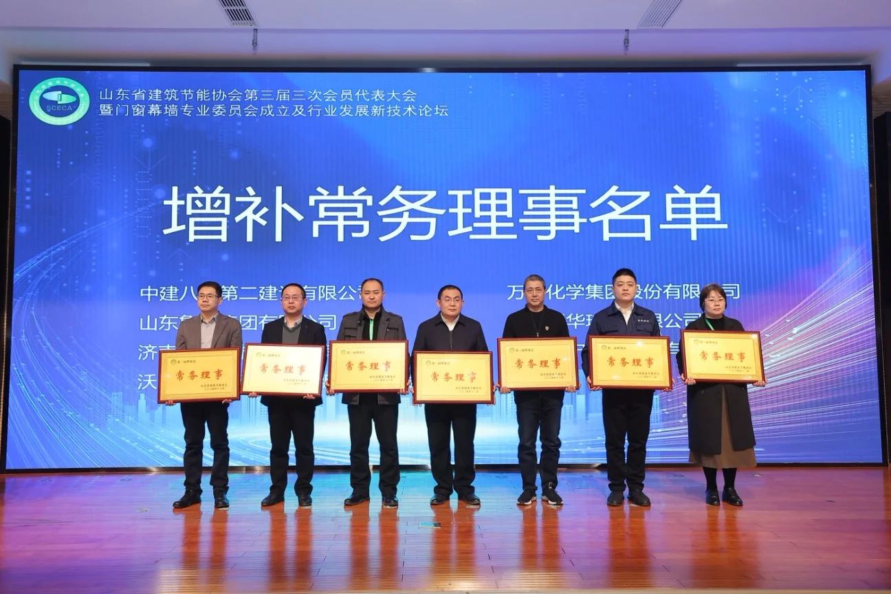 會上,融華公司當選山東省建筑節(jié)能協(xié)會常務理事單位和山東省建筑節(jié)能協(xié)會門窗幕墻專業(yè)委員會副主任委員單位。