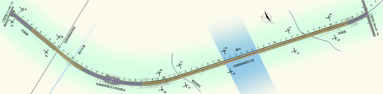 鳳凰路北延工程位于濟(jì)南市歷城區(qū)、高新區(qū)、濟(jì)陽縣,路線南起壩王路與荷花路交叉口,接現(xiàn)狀壩王路,依次跨越邯膠鐵路聯(lián)絡(luò)線、南水北調(diào)工程濟(jì)東明渠后繼續(xù)往北,在小河套村向西北方向延伸,跨越黃河后,終點(diǎn)位于遠(yuǎn)期規(guī)劃主干路與G220交叉口處。項(xiàng)目全長(zhǎng)6659.2米,其中,黃河特大橋長(zhǎng)度為3668米,兩端接線長(zhǎng)度為2991.2米,包括大橋1座,平面交叉2處,涵洞11道。